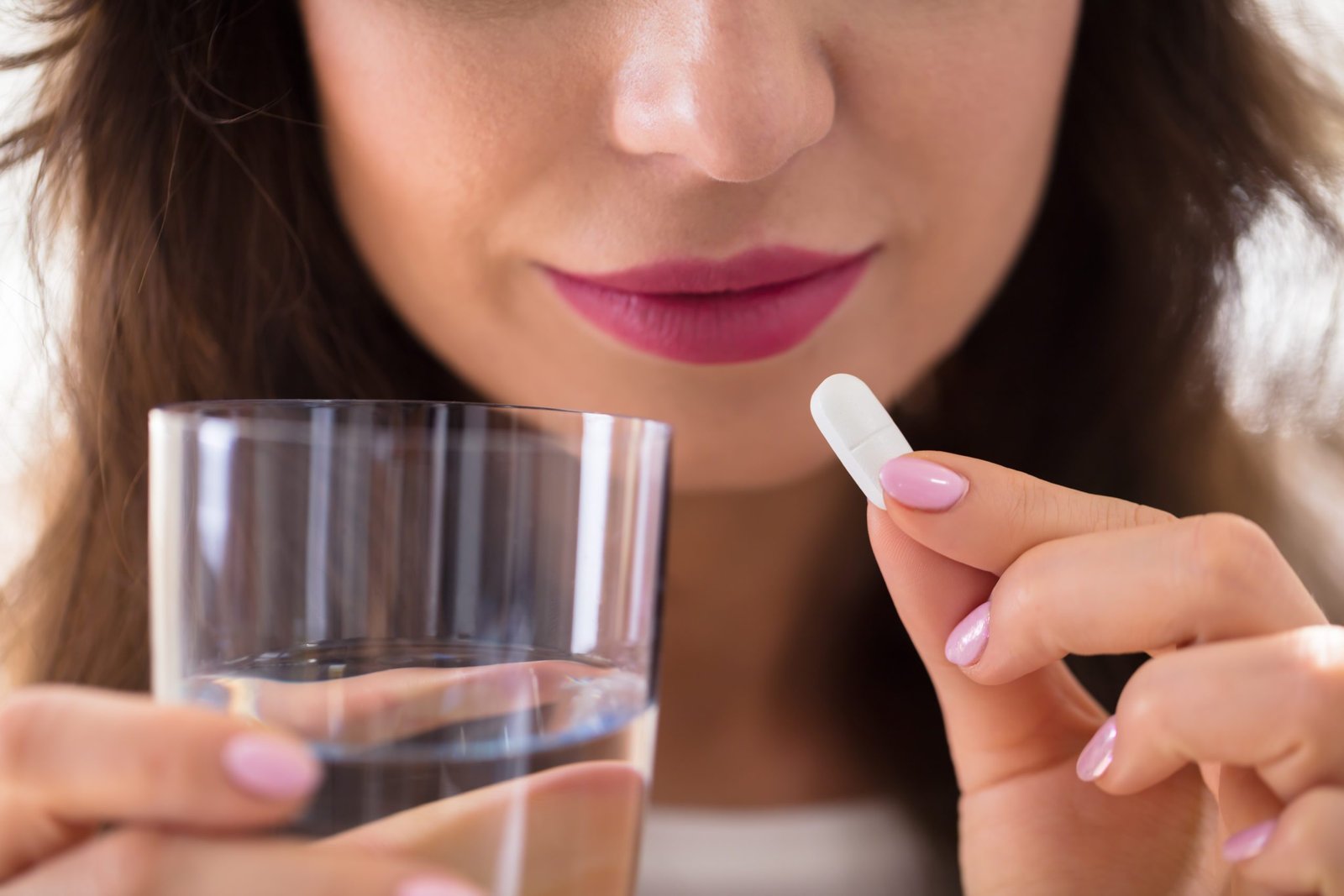 medical tablets are placed in the palm of your hand and a glass of water is in your hand to wash down